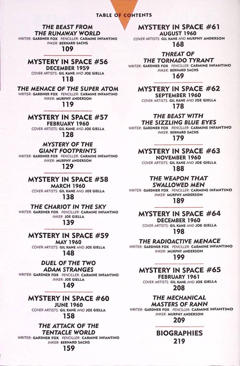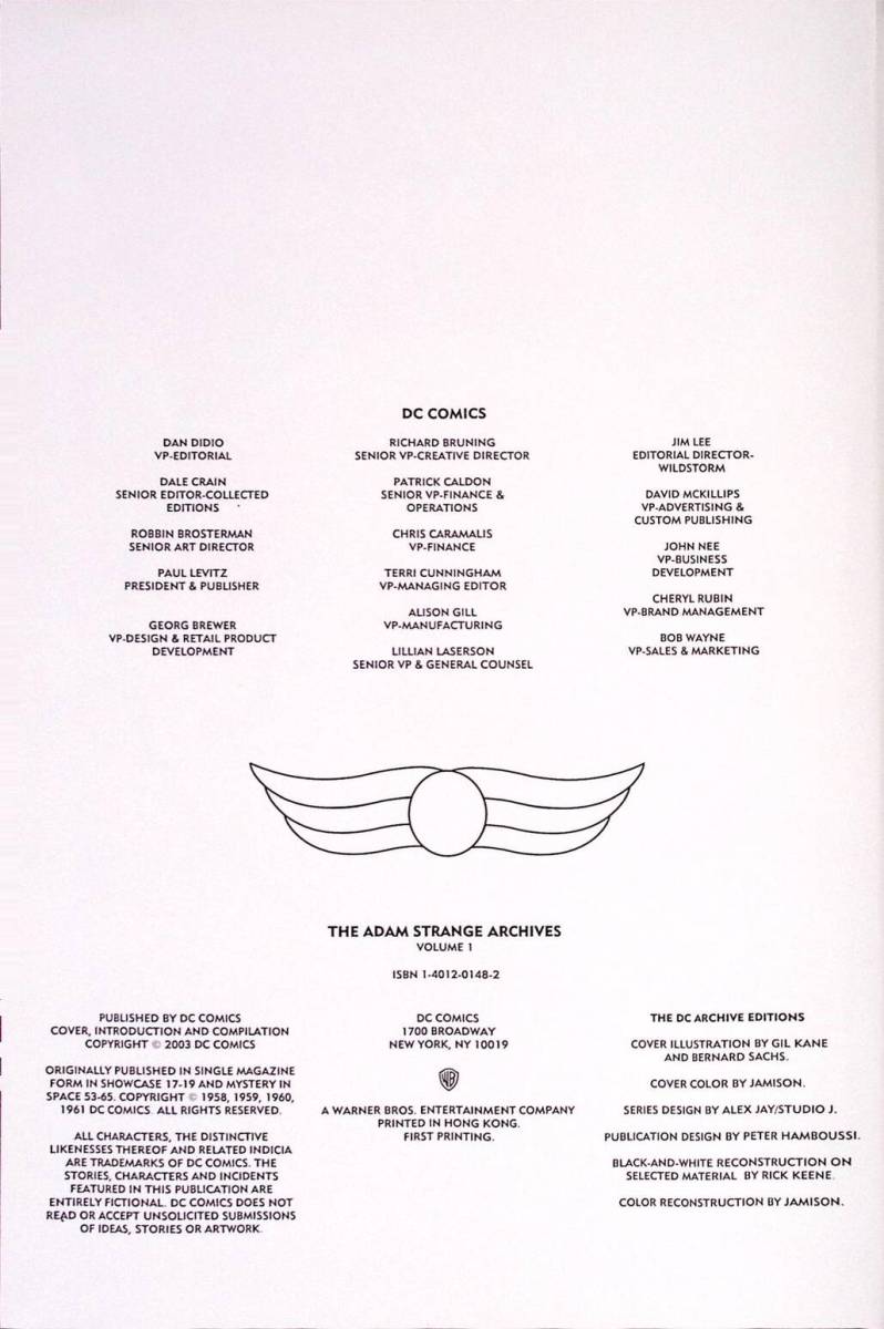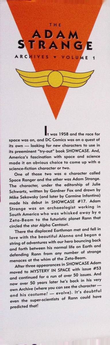 Adam Strange Archives Vol. 1 (2003) : After being mysteriously teleported to another world by a scientist in search of a husband for his daughter, Adam Strange’s life changed irreversibly as he instantly went from being a simple Earth archaeologist to a cosmic adventurer and hero. This book delves into the true characterization of the man who becomes a myth by exploring his early childhood and his relationship with his estranged family. By also exposing the hidden secrets of Rann, his new home planet, the crossroads of Adam Strange’s past and present converge to reveal the path of his future.