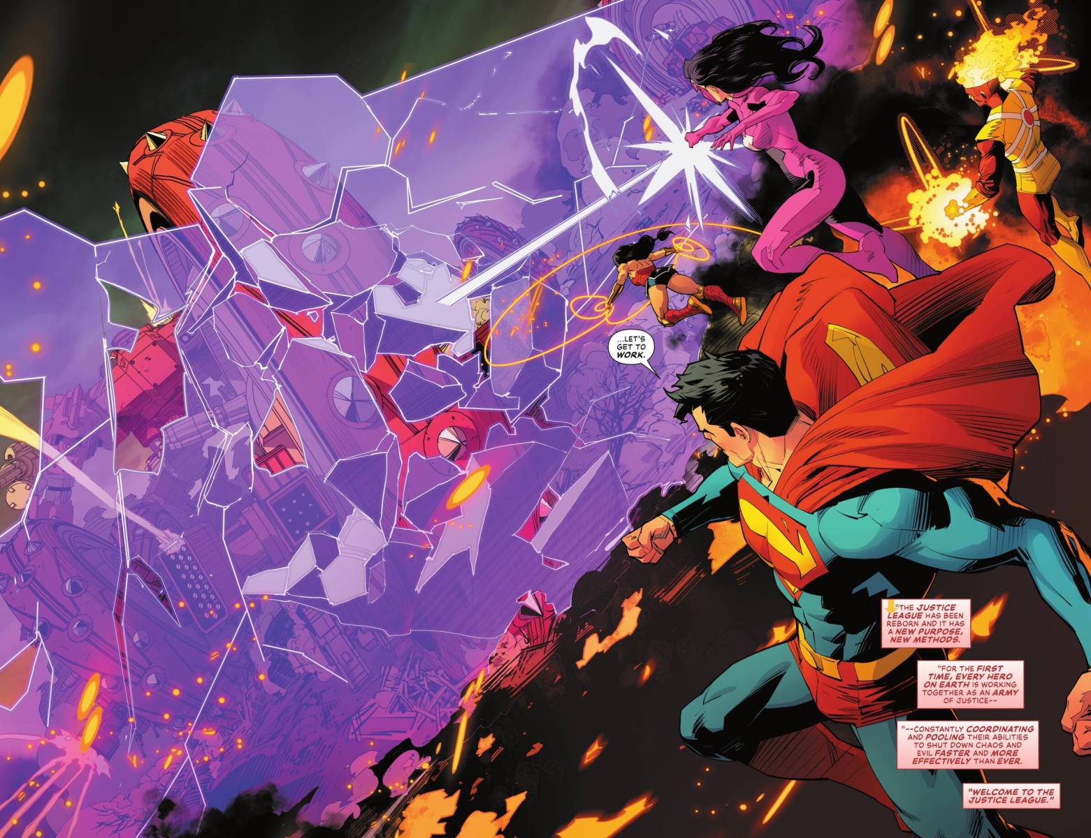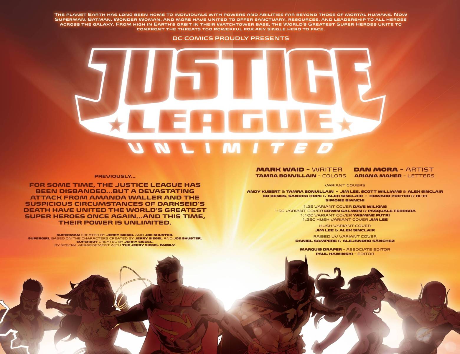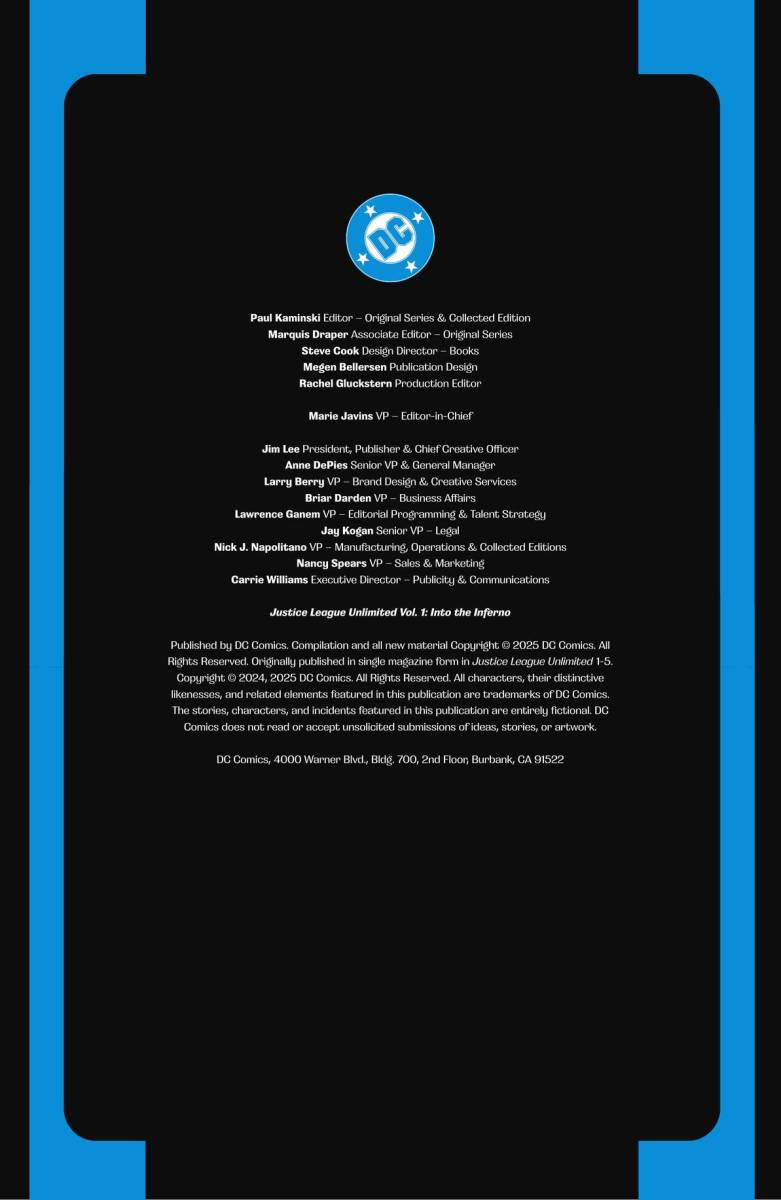 Justice League Unlimited Vol. 1 – Into the Inferno (TPB) (2025) : In recent years, the Justice League had disbanded — but now, following the events of the DC blockbuster event Absolute Power, the World’s Greatest Super Heroes are a team once again — and opening the doors of their Watchtower headquarters to heroes from across the DC Universe! Following the death of the ultra-powerful super-villain Darkseid, a massive power vacuum has been triggered, and Superman, Batman, and Wonder Woman must unite like never before and expand the Justice League to encompass every hero championing the forces of good in the face of incredible evil! DC fans will thrill at watching never-before-seen configurations of heroes — from the iconic to the obscure — taking on the biggest threats in the universe! As our heroes work to uncover the mystery of the dark lord’s successor, Ray Palmer’s Atom Project triggers a race between hero and villain to control the fate of metahuman abilities on planet Earth that threatens to destroy everything the League has built — unless a traitor in their midst destroys them first! Do not miss the dawn of the new era of justice in the first Justice League story in years! Collects JUSTICE LEAGUE UNLIMITED (2024) #1-5.