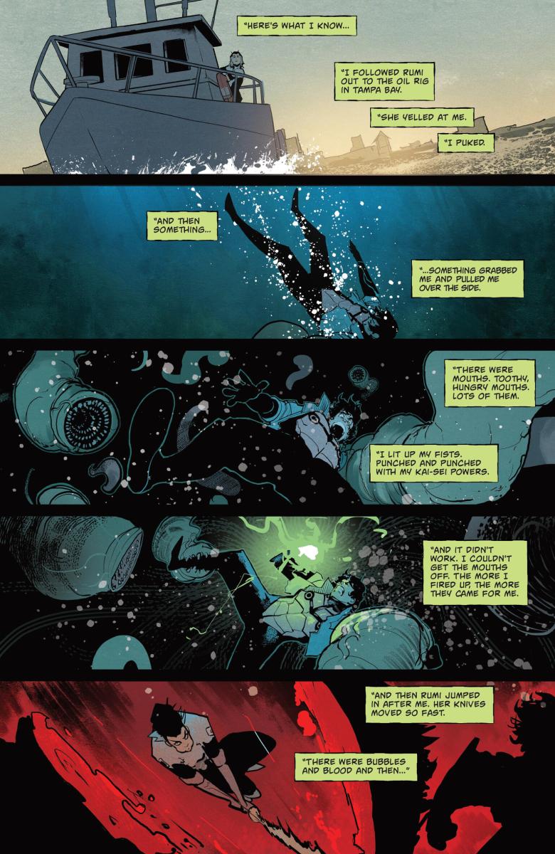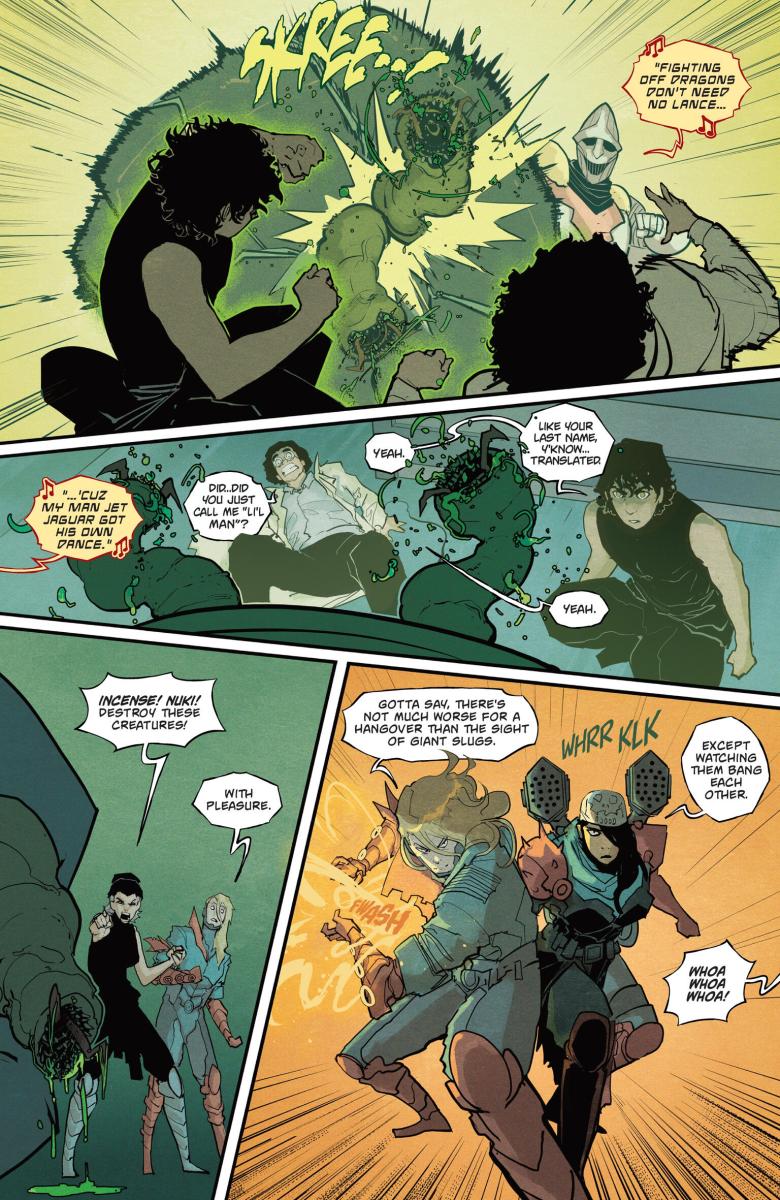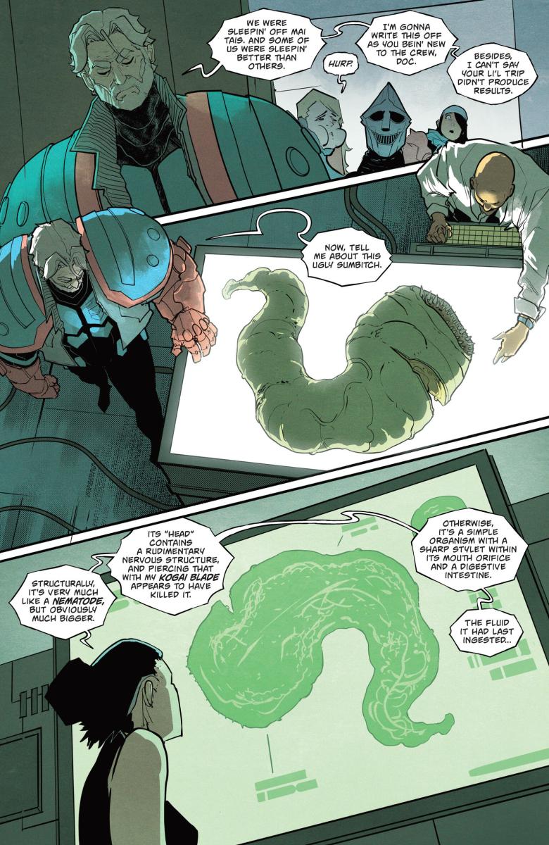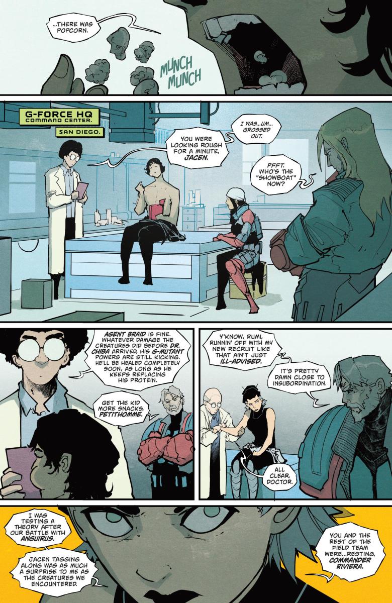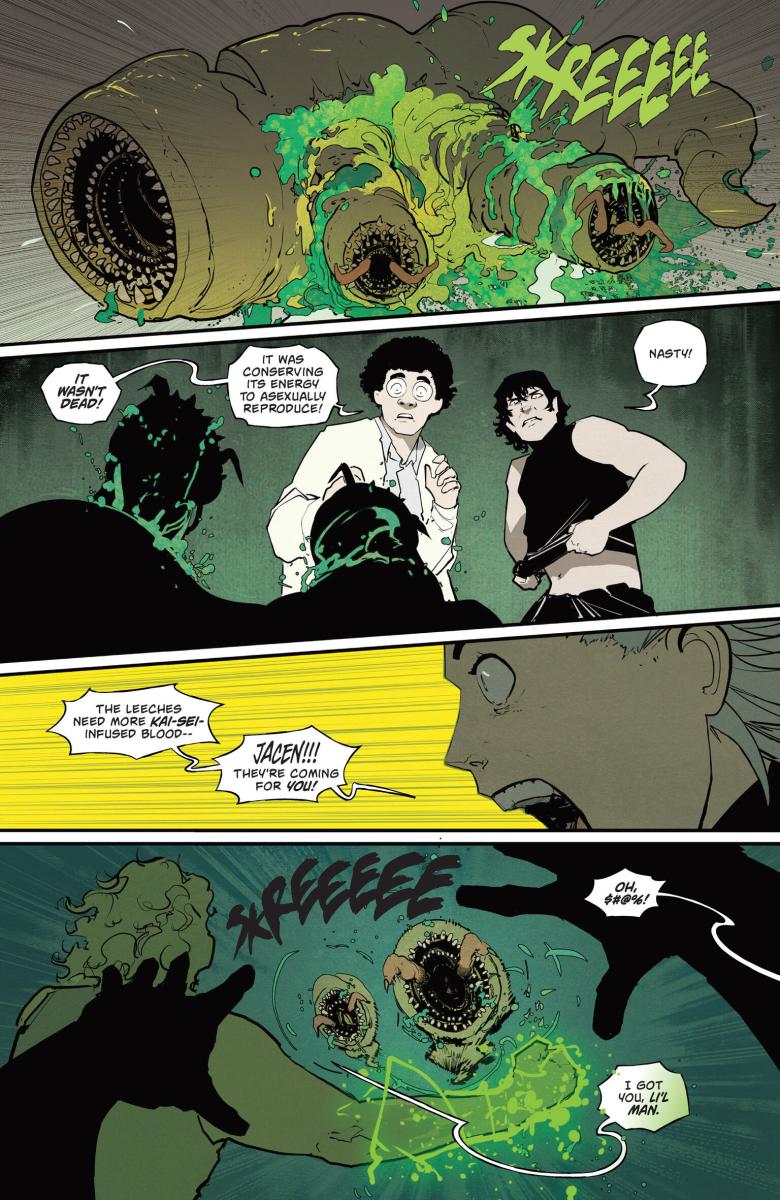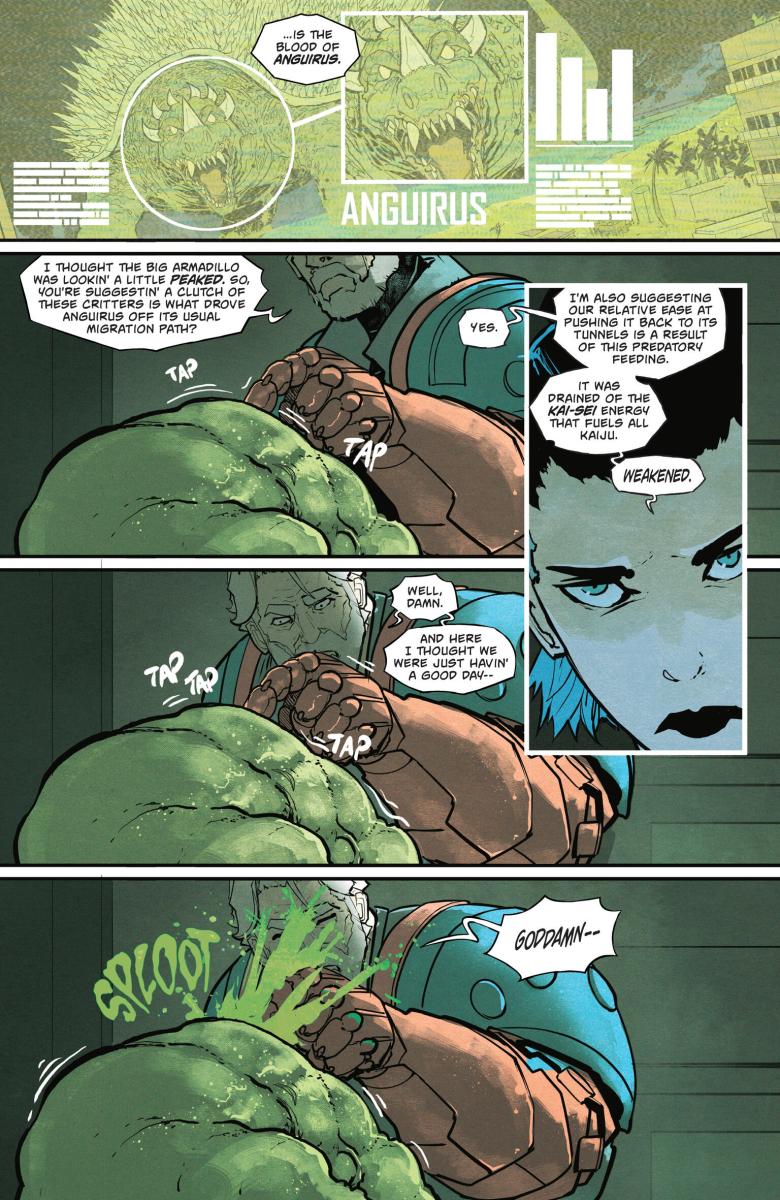 Godzilla #2 (2025) : After a shocking first issue, the flagship ongoing of the Kai-Sei era is back with more! Jacen and his fellow G-Force members made short work of Anguirus… but were they only able to defeat the kaiju because it was weakened by the same leeches currently fighting to bring Jacen to a watery grave? And if these leeches are able to weaken kaiju… can G-Force weaponize them in their mission to kill Godzilla? And finally, learn more about Lament, the mysterious new kaiju who seems to be puppeteering from the shadows.