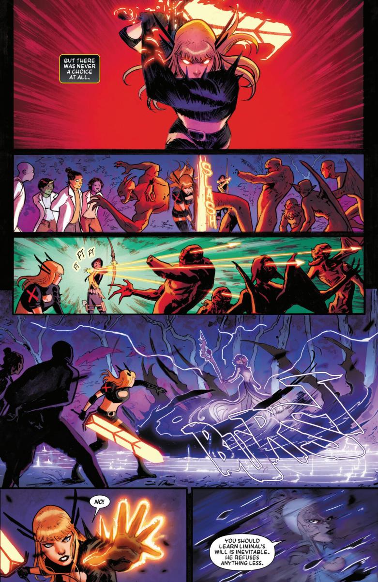 Magik Vol. 1 – Unleashed (TPB) (2025) : The X-Man Ilyanna Rasputina strikes out on her own with new allies and dark powers arrayed against her. Something ancient has awakened beneath the Alaskan ice. Unfortunately for it, that’s Magik’s territory now! Meanwhile, demons have been hunting mutants abroad — and as Ilyanna begins a search for answers, she and her ally Cal must dive deep into the Tokyo underground. But who is watching Magik from backstage? And has Cal teamed up with Earth’s best chance against the demon invasion — or its prophesized leader? Magik will finally meet the demons’ leader — but who, or what, is Liminal? And when this confrontation plays out, will Ilyanna be able to suppress her darker impulses? Collects MAGIK (2025) #1-5.