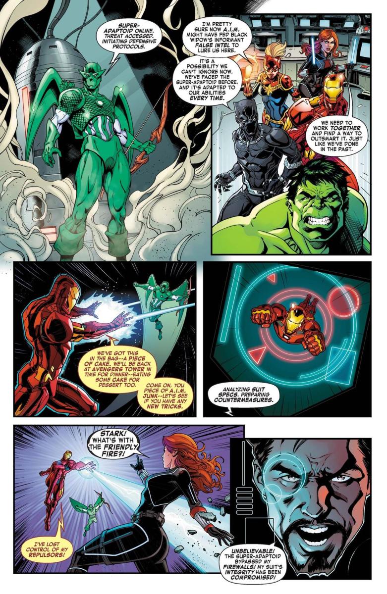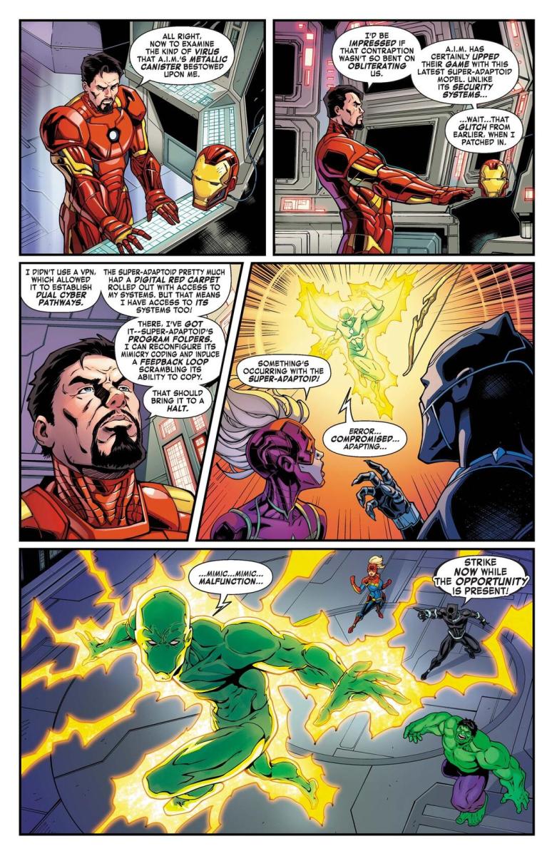 Avengers – The Only Certainty is Change #1 (2024) : An A.I.M.-created android that can mimic the powers of superhumans, Super-Adaptoid is a ruthless would-be world conqueror. Find out how he was able to hack into even Tony Stark’s systems—and learn how YOU can protect yourself!