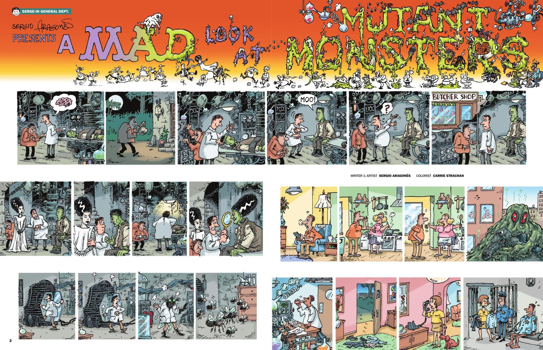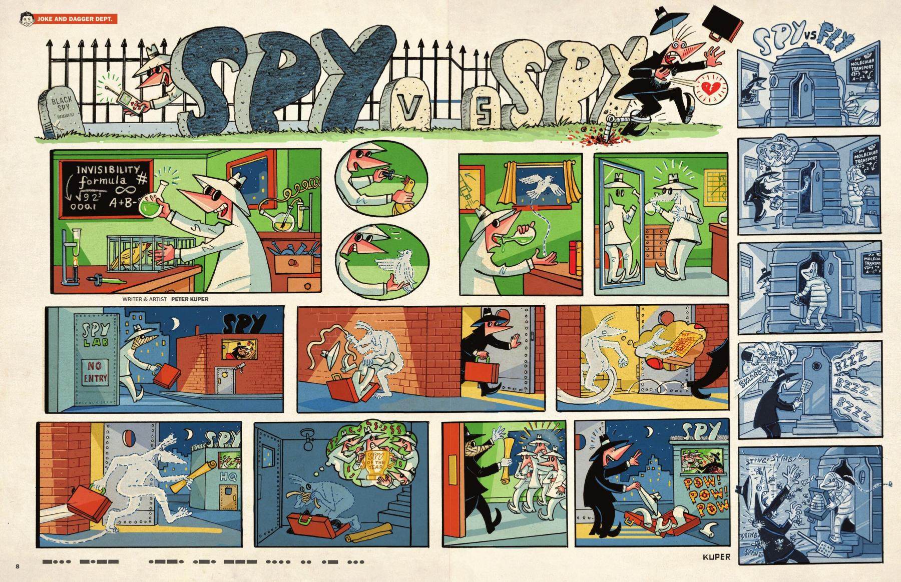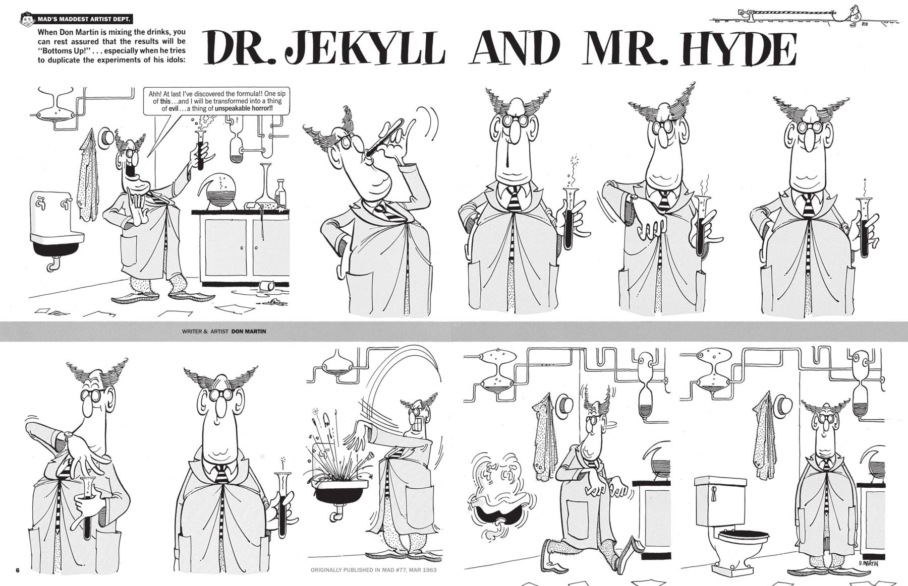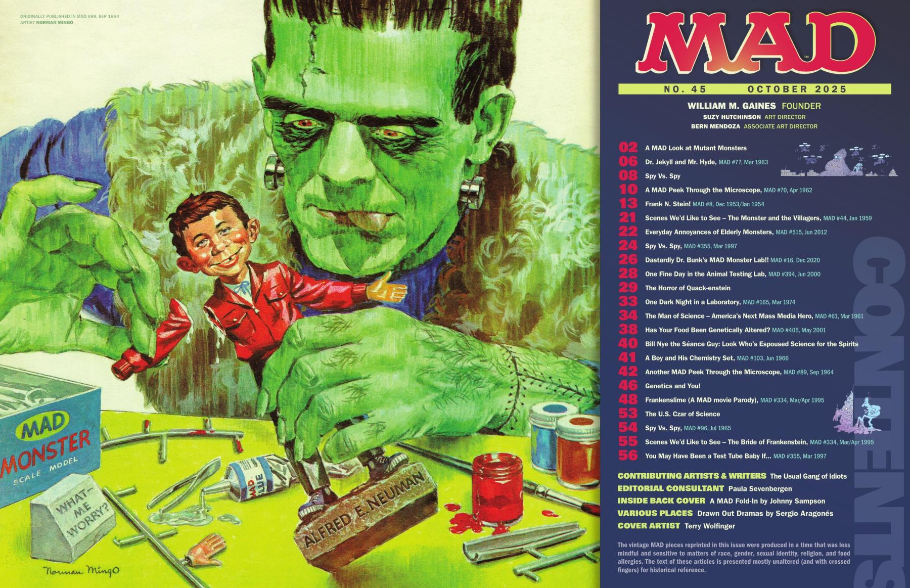 Mad Magazine #45 (2025) : Take your humor to new heights! MAD #45 bounces back for another round of fabulous MAD favorites like Spy vs. Spy, “A MAD Look at…” by Sergio Aragonés , and your favorite classic movie and TV parodies, PLUS more new content to front flip you right over… with laughter. And you can do a half twist to the page of Johnny Sampson’s new Fold-In. So, hop on over to a local comic shop and scoop up MAD #45… it’ll make you jiggle with giggles!