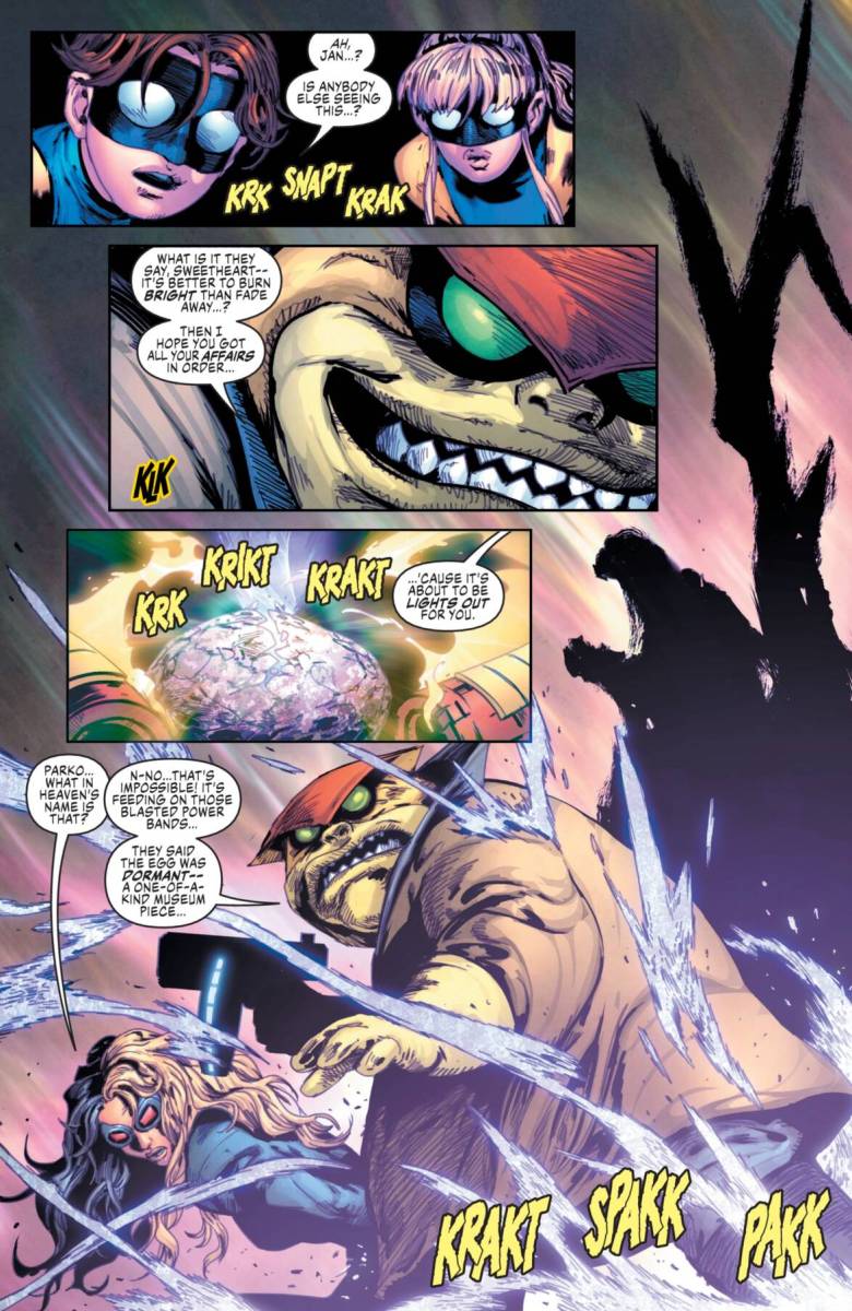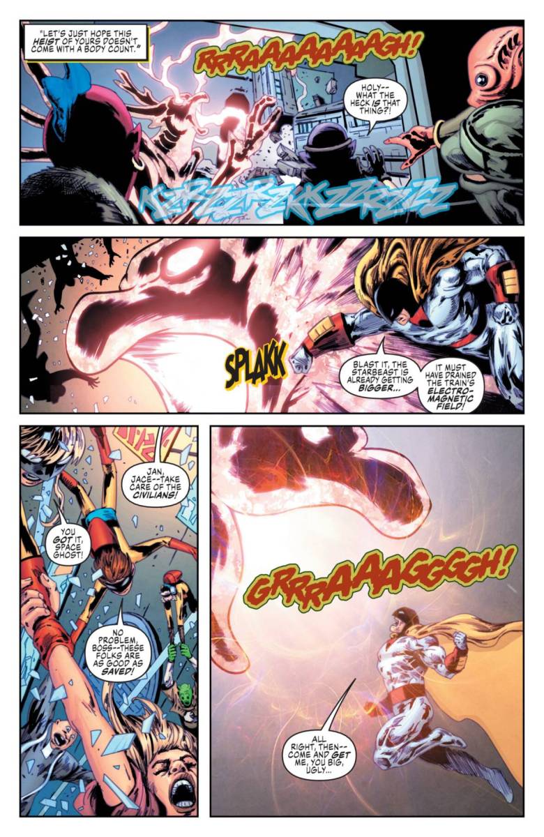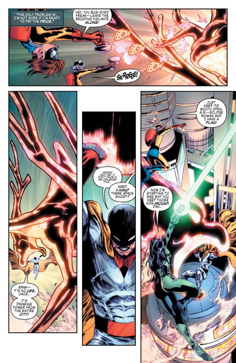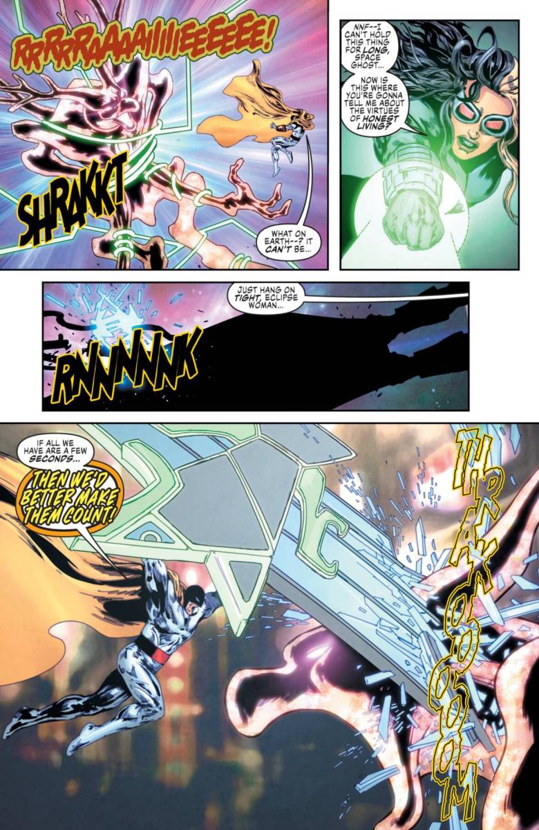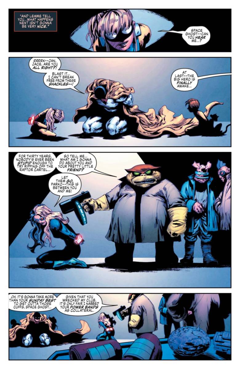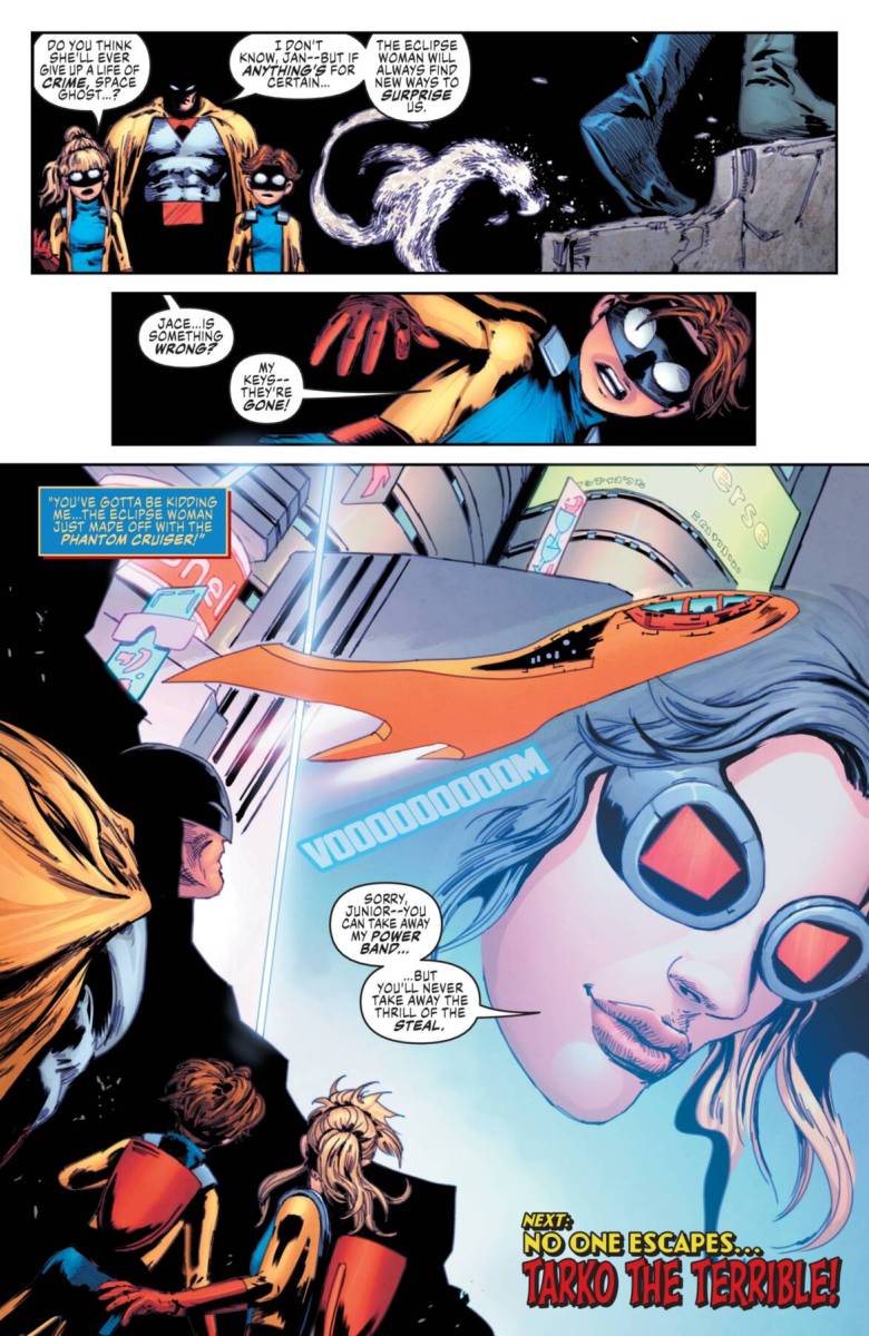 Space Ghost #2 (2025) : The notorious thief known as Eclipse Woman — an old flame from Space Ghost’s early days — unwittingly puts both herself and the Ghost Planet in the crosshairs of the ruthless criminal kingpin known as Boss Parko when she steals a mysterious alien artifact. Will activating the strange relic help the team to escape from Parko’s wrath — or will it doom them all?