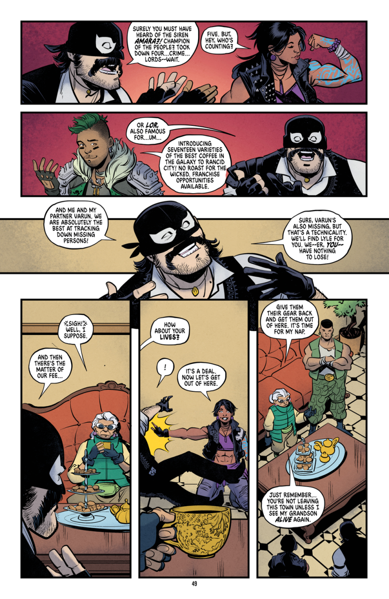 Borderlands – Moxxi’s Mysterious Memento Vol. 1 (TPB) (2025) : Former celebrity and current badass Siren Amara misses the fame and excitement of her glory days. Nowadays common stooges don’t know who they’re messing with—though they soon find out. In order to reclaim the highs of her former heroics, she needs a gig. Luckily, Moxxi needs help recovering a mysterious artifact . . . Collects Borderlands: Moxxi’s Mysterious Memento #1–#4.