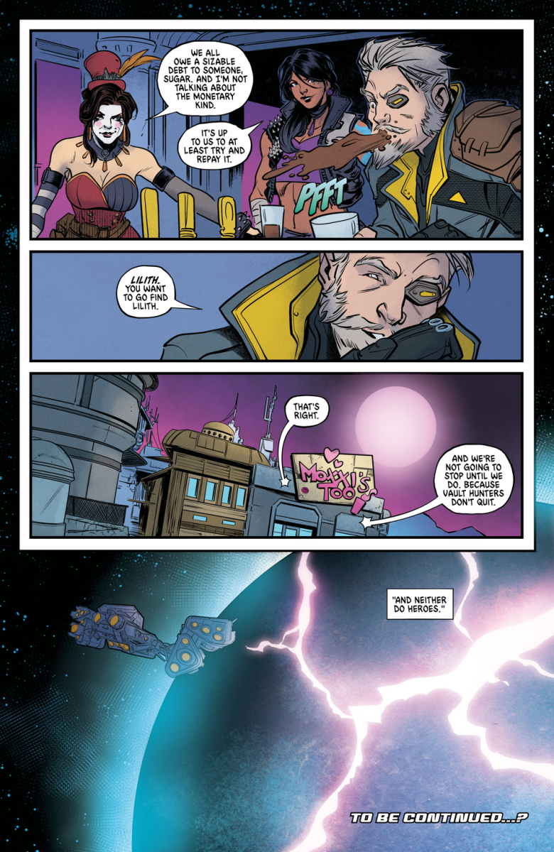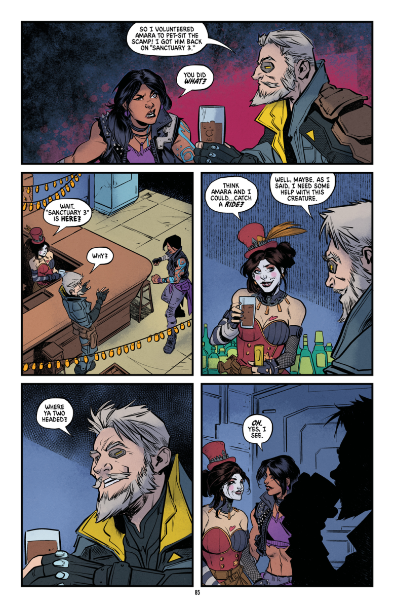 Borderlands – Moxxi’s Mysterious Memento Vol. 1 (TPB) (2025) : Former celebrity and current badass Siren Amara misses the fame and excitement of her glory days. Nowadays common stooges don’t know who they’re messing with—though they soon find out. In order to reclaim the highs of her former heroics, she needs a gig. Luckily, Moxxi needs help recovering a mysterious artifact . . . Collects Borderlands: Moxxi’s Mysterious Memento #1–#4.