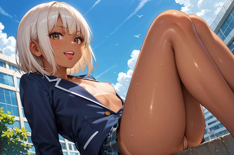 Download free and read/watch gallery online: [d_624002][AI学校] お父さんと日焼け黒ギャル銀髪18歳娘の野外ノーパンチラのスジマン撮影会 【AIグラビアNo005】縦向きバージョン