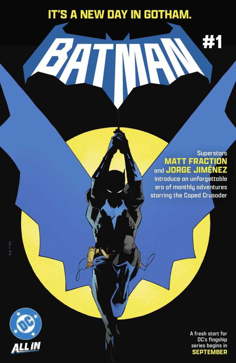 Batman #1 (2025) : A BOLD NEW ERA OF BATMAN STARTS HERE! A new day dawns for the Dark Knight Detective as Eisner Award-winning writer Matt Fraction (Hawkeye, Superman’s Pal Jimmy Olsen) joins forces with superstar artist Jorge Jiménez (Batman, Summer of Superman Special) for an unforgettable new era of Batman! The best superhero in comics gets a brand-new first issue to kick off this new era that will test Batman and Bruce Wayne like never before!