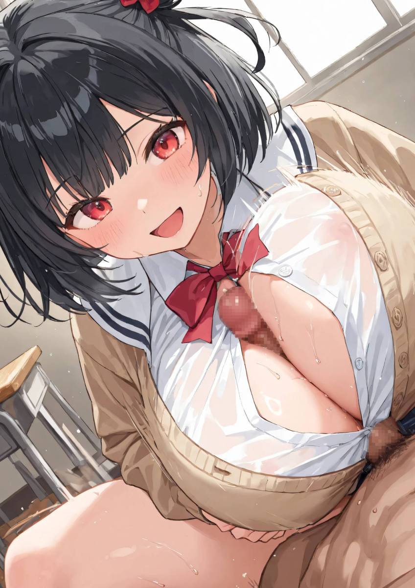 Title: えっちな事を勉強中な爆乳黒髪JK
