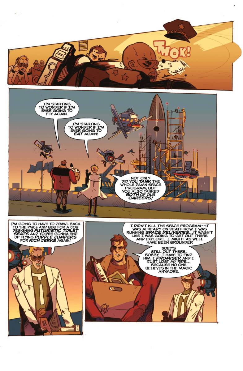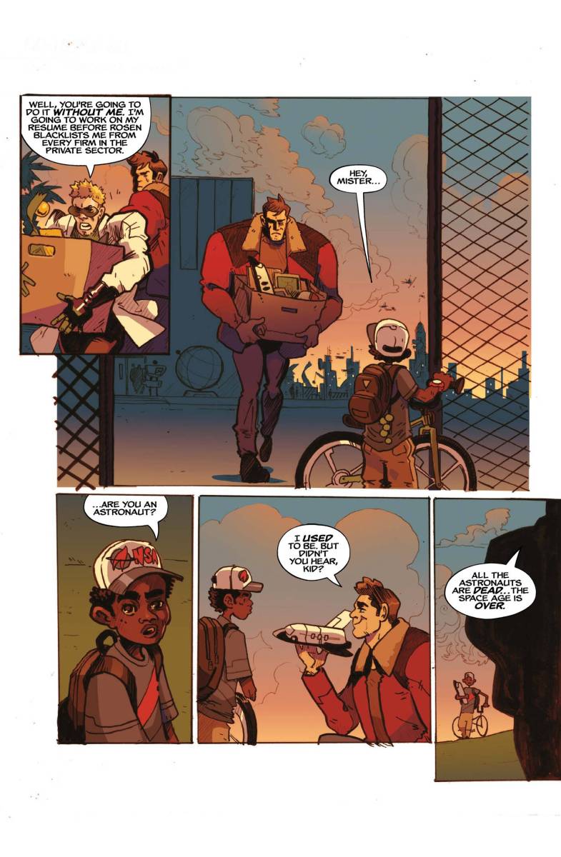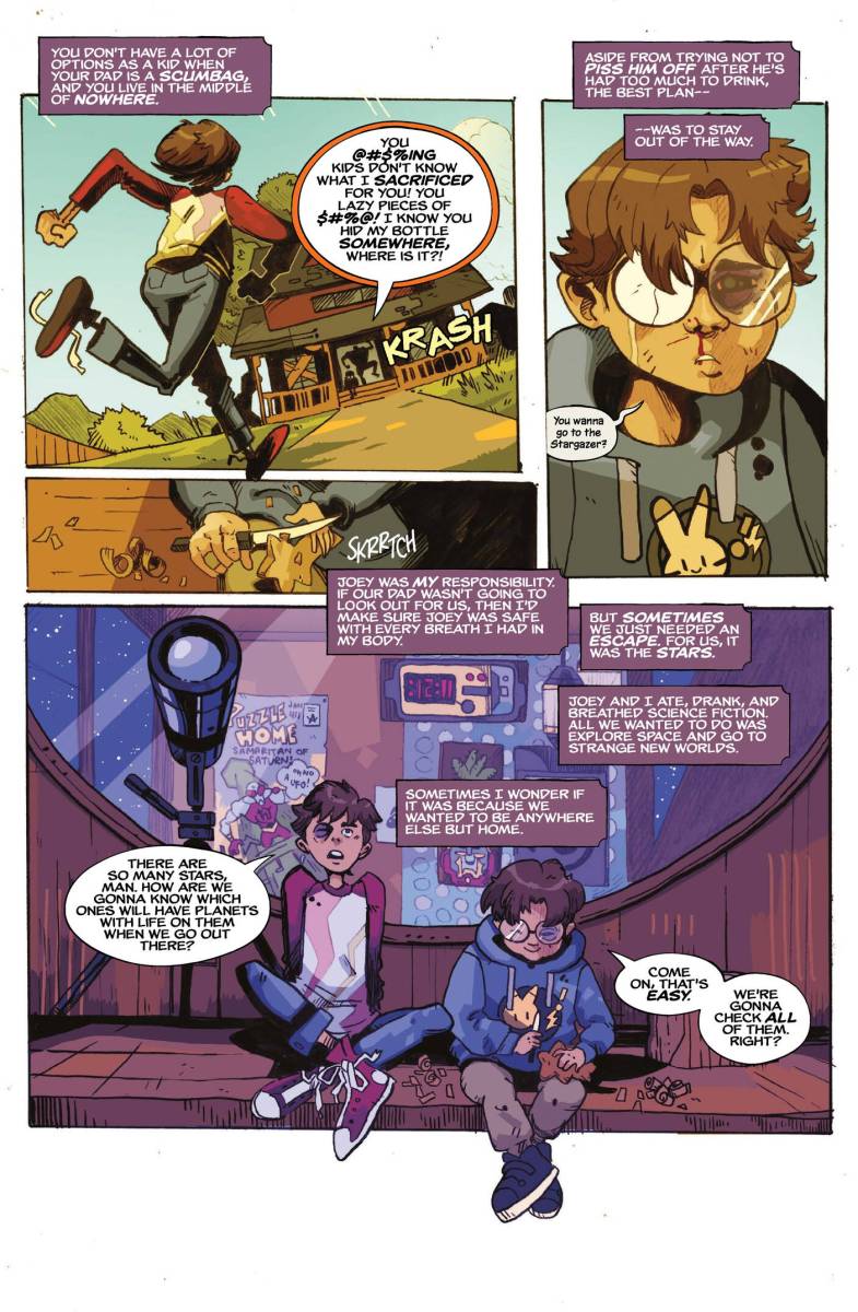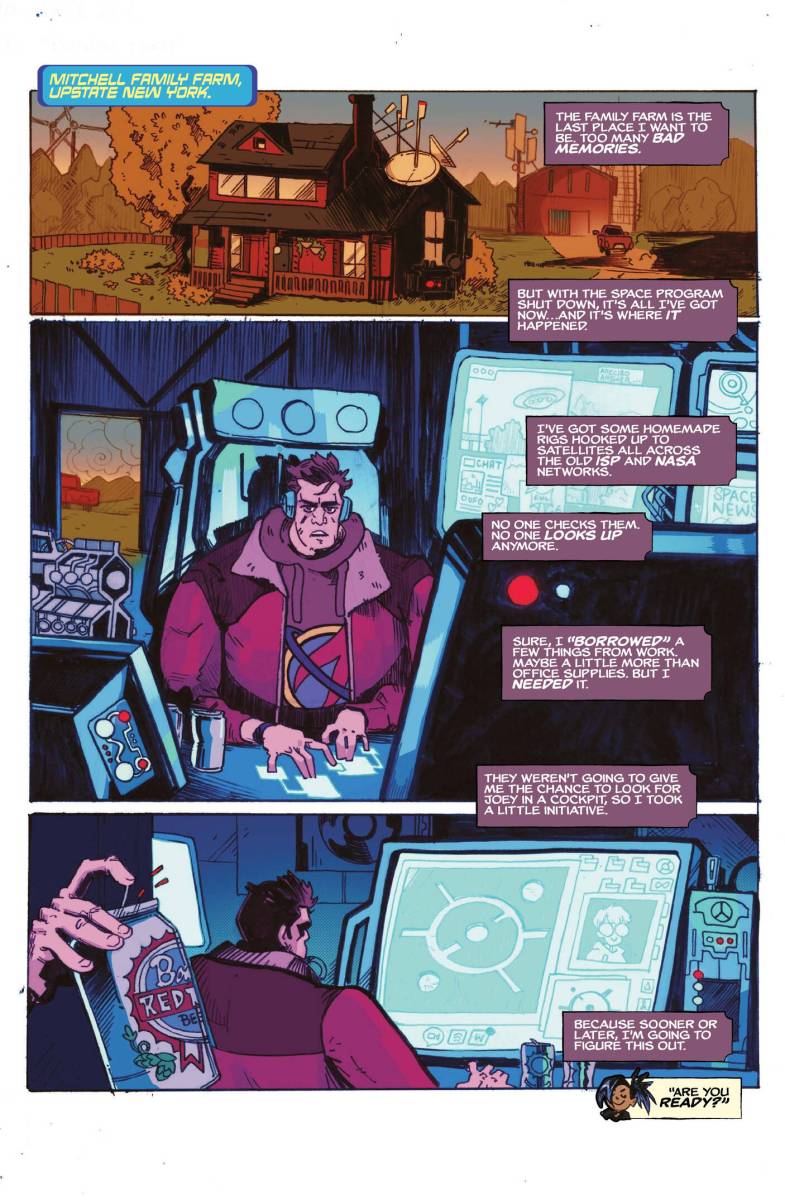 The New Space Age #1 (2025) : Disgraced astronaut Mark Mitchell has only ever had one true mission — to find his little brother Joey, who was abducted by aliens from a crop circle when they were little. But when Mark’s hotshot piloting gets him grounded and the last of the public space program defunded, Mark loses his only means of finding Joey out in space. Until Mark’s homemade scanning rig discovers the shocking truth about the crop circles — they’re instructions for space travel. Mark will need to uncover the hidden messages that have been left on Earth for years, and reverse engineer the magic that can finally help him find Joey.