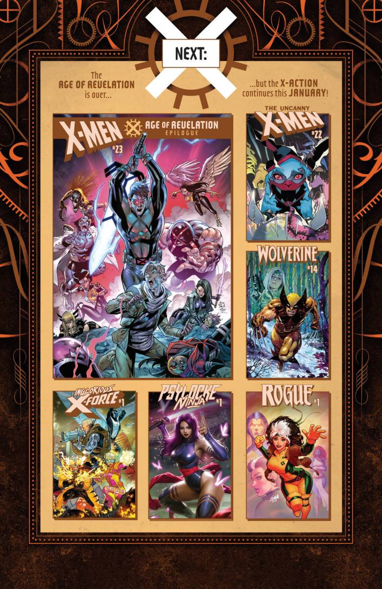 X-Men – Age of Revelation Finale #1 (2025) : “I have plotted the way forward for this species. For this world. For all of us. I do not do this out of anger, but of love. I do not do this for love of power, but hatred of it. I was charged with ensuring the survival of the fittest. I am ensuring the survival of everyone.” – Revelation