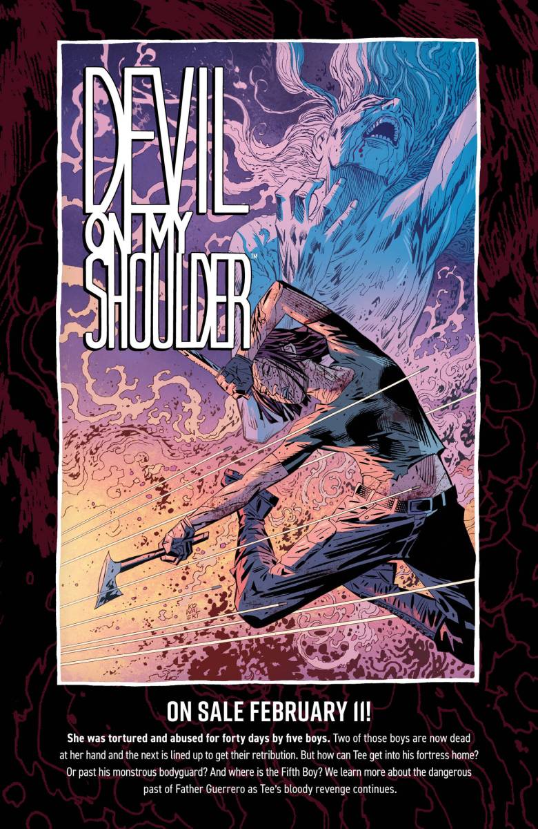 Devil on My Shoulder #2 (2026) : They tried to kill her, but they failed. Now the five boys that tortured, abused, and tormented her have debts in her ledger, and she’s coming to collect. And her vengeance will be absolute. And it will be glorious. The blood-soaked revenge story continues…