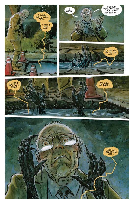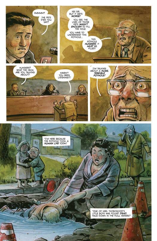 Hello Darkness #17 (2025) : ‘Tis the season… for fearsome frights! Get ready for a gruesome stocking stuffer of Ho-Ho-Horror with these tooth-gnashing tales! Witness a dark hunger that can never be sated in “The Pothole” by award-winning cartoonist Tyler Crook. Then, take a walk down memory lane with “Recollect” by Zack Kaplan and Dennis Menheree as they unfurl a crime that cannot be forgotten and cannot be forgiven.