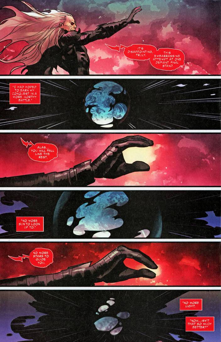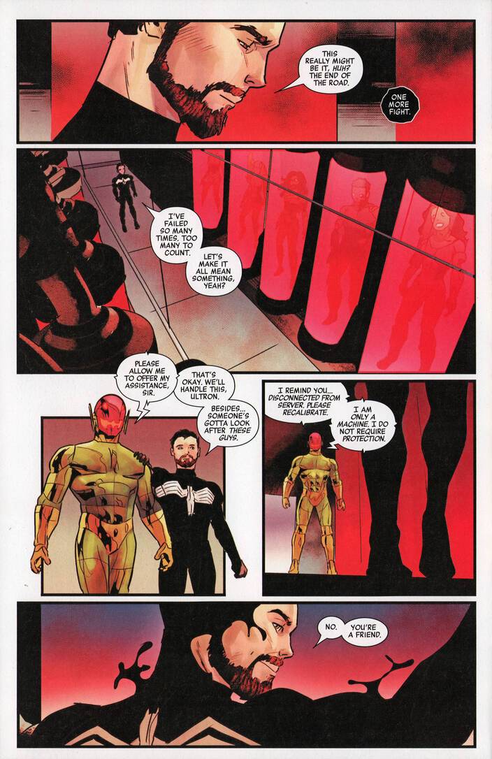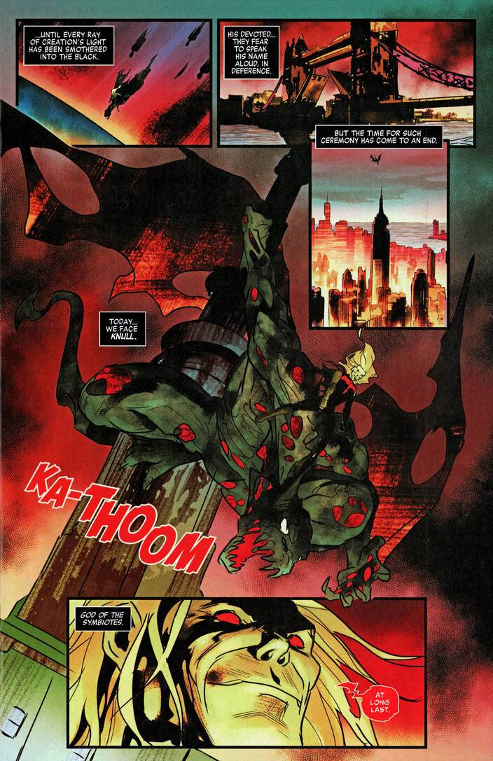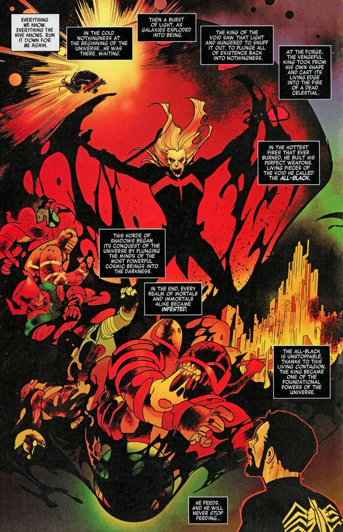 Marvel Zombies – Red Band #5 (2025) : FADE TO BLACK! Our alternate history of the undead Marvel Universe reaches the modern age with the coming of the King In Black as Knull arrives! The final fate of human- and superhuman-kind is settled while the god of the void arrives to return all things to nothing! Can the heroes — dead or alive — fend him off? One way or another, it all ends here!