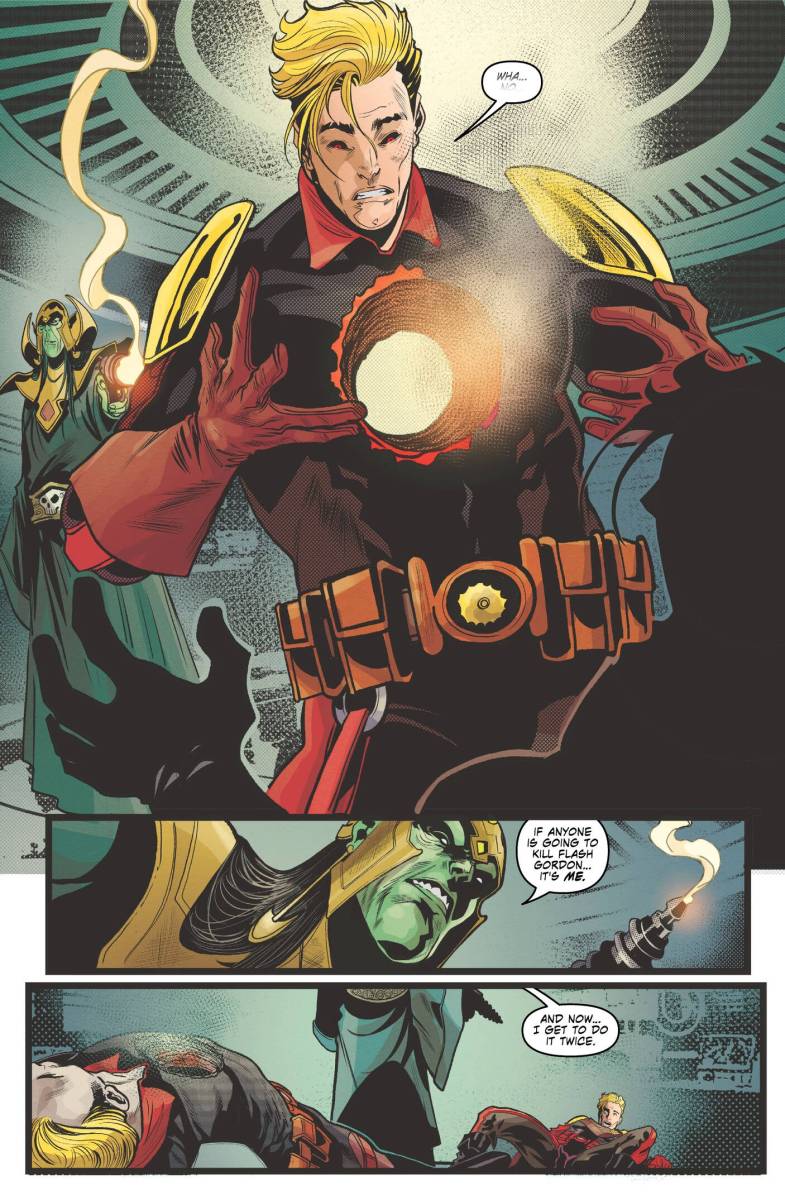 Flash Gordon #15 (2026) : THE SECRETS OF MONGO REVEALED — FLASH GORDON VS. FLASH GORDON — MING VS. MING — WORLD VS. WORLD. IT ALL COMES TO THIS! What Flash Gordon discovers in the tunnels beneath Mingo City will change everything in the battle to come! But his evil counterpart is determined to beat him there — and with the help of two Dr. Zarkovs, Dark Flash has an edge. Will the two men — and two worlds — destroy each other? Jeremy Adams and Eder Messias fulfill a flash-tastic destiny in the final issue of this pulse-pounding arc!